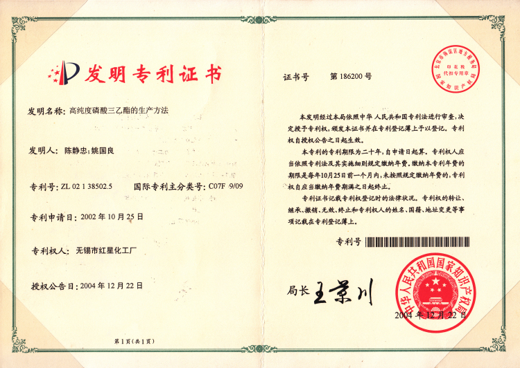 主要生產(chǎn)磷酸三異丁酯、磷酸三丁酯、磷酸三乙酯三個品種8個規(guī)格